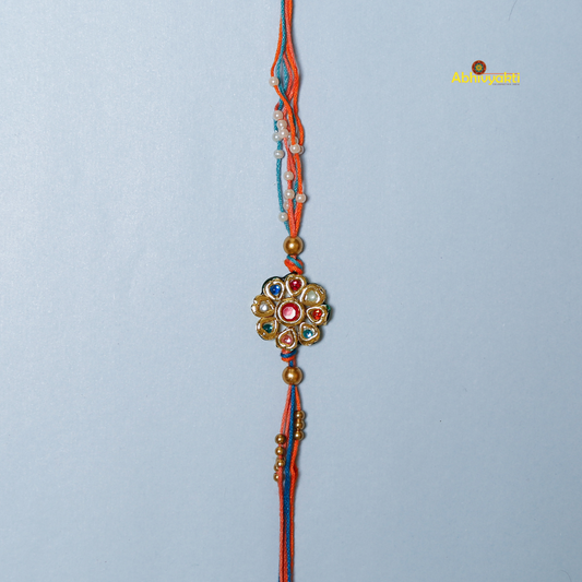 Multicolor Floral Kundan Premium Rakhi Bracelet_USA