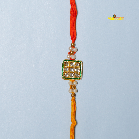 Yellow-Orange Kundan Premium Rakhi Bracelet_USA