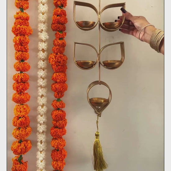 Tulsi Wall Hanging Tealight Holder Diya is a stunning and unique decorative element for your home or altar. It comes as a set of 6 perfectly symmetrical teardrop t-light holders which make an astonishing Signature Wall!